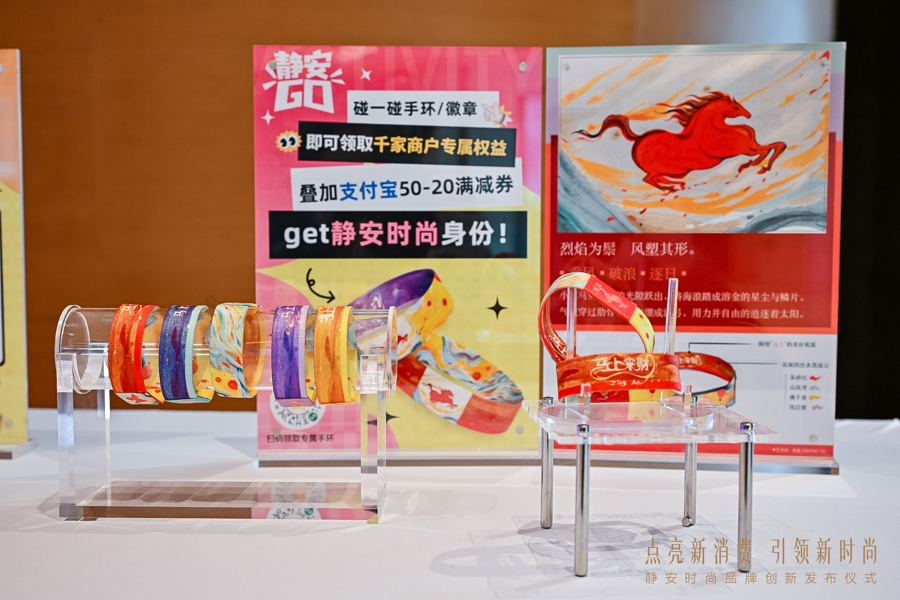 今年以来,静安区持续探索消费新场景、新模式,创新构建“文旅商体展”深度融合机制,并于9月底正式推出全市首个“静安文旅商体展联动平台”及“静安GO消费手环”。姚磊透露,本次活动首发与青年艺术家张渔合作的“骏马逐日”联名艺术手环。通过NFC技术,消费者可便捷获取商圈信息、享受商户权益,而背后平台则通过数据分析实现客流引导与消费趋势研判,构建了从体验到转化的智慧消费闭环。